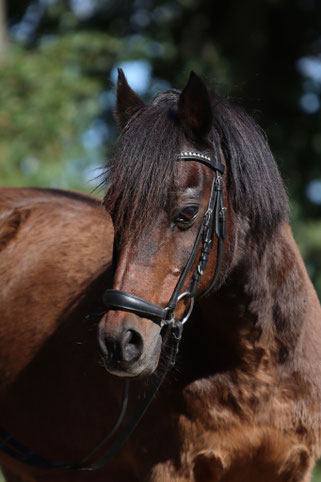 Viola ist bei uns eine der Dienst-ältesten Ponys. Sie ist gerade durch ihr sensibles und Feinfühliges Wesen ideal für den Einsatz in der Therapie geeignet. Sie genießt es aber genau so von ihren vorwiegend Therapie- und Voligierkindern stundenlang gestriegelt und gekämmt zu werden. Sie läuft bei uns in den Freizeitvoltigruppen sowie auch in der Therapie.